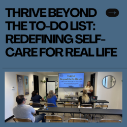 Participants left the workshop with actionable strategies centered on small, intentional shifts. Rather than defaulting to stereotypical ideas of self-care like bubble baths, they were challenged to rethink what self-care truly looks like in their own lives—and how consistent, thoughtful actions can gradually move the needle toward greater resilience and well-being.
